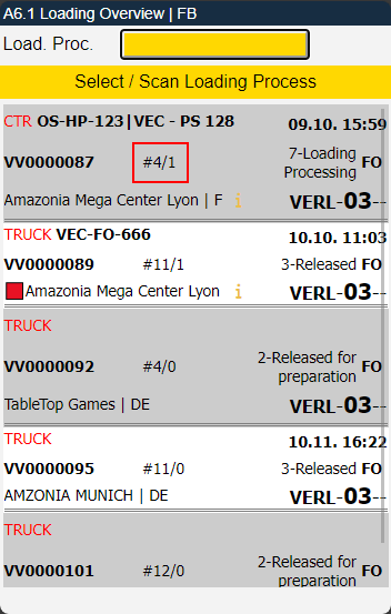 The Loading Process Overview A6.1 now only shows processes with the states 2-Released for Preparation, 3-Released for Loading or 7-Loading Processing.