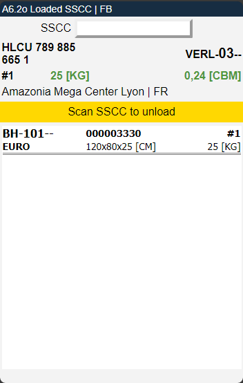 - Left: Number of open SSCC in this loading process | Right: Already loaded SSCC in this loading process