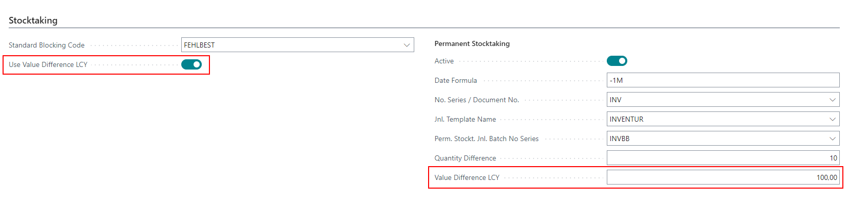 In the SIEVERS WMS setup, you can now activate the option Use Value Difference LCY and enter a threshold value in the corresponding field. If the option is activated, the creation of the 2nd or 3rd count is also dependent on this value limit. For example, you can set that no further count is started below a value difference of €20.