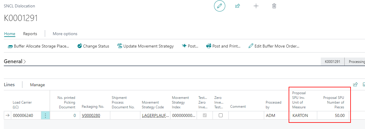 If the inventory has a SPU stored, this is transferred to the Outbound Stock Post line as a proposal. This can also be changed or deleted.