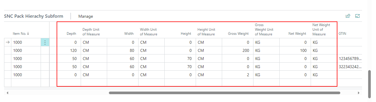 Page Items at section SNC Classification and Units -> Subpackaging Unit (SPU)