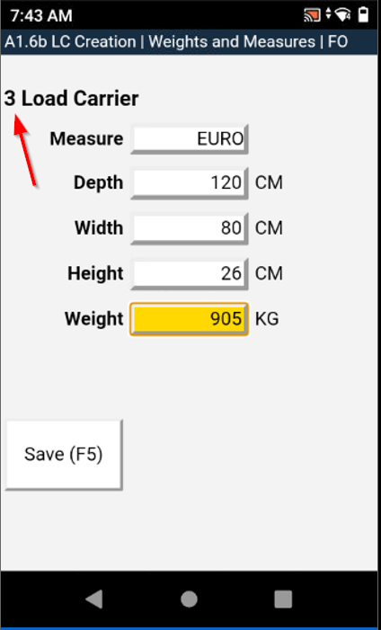A1.6b LC Creation Weights and Measures not showing Load Carrier Quantity - Item 80192