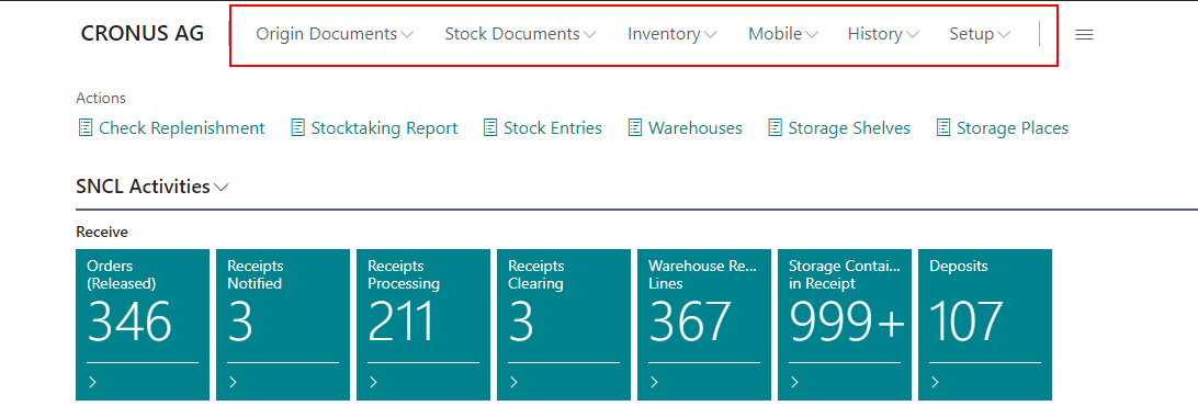 We have removed the old actions from the role center action menu of the SIEVERS WMS role and added some new, more useful actions in their place: