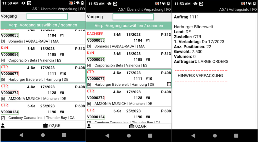 We have improved the process in A5.1 Packaging Process Overview. Previously, the packer had to search for his process in the overview by hand. Now it is possible to simply scan the PTU or SSCC and jump directly to A5.2.