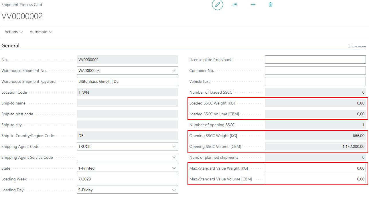 The weight and volume field captions in the shipment process now include the units you have entered in the Base Unit Of Measure List.
