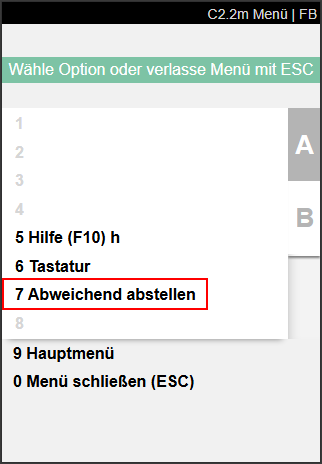 Example scenario: The user drives with the intended quantity to the target place. Once there, he finds that for some reason the quantity cannot be completely put down at the target place. So he only puts down a part and confirms this with a smaller quantity input. For the remaining quantity he can now select menu item B7: Drop Alternatively. Here he can enter a deviating storage place. Then the quantity remaining is posted and put down there.