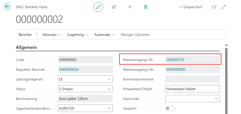 The fields Target SU and Target Storage Place are now automatically pre-filled with the original Load Carrier and storage place of the line. This simplifies the cancellation process when the item should simply be put back. This is only possible if the original Load Carrier had the type SU and the status 2-Recorded.