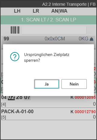 - Block Orig. Target Location A2: Causes the original target location to be blocked when searching for a new target location in A2. There is a corresponding query when changing the target location in A2. This is useful when the change occurs because the actual target location is not usable.