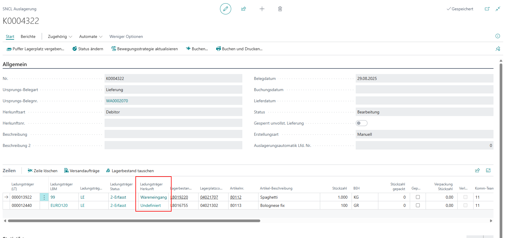 It was fixed that for inventory items without Load Carrier code, the values in the columns Load Carrier Load carrier type and Load carrier type changed inconsistently when filtering or sorting; now these values remain empty or at default values.
