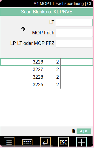 The work instruction in the MDE form A4.MOP has been made more precise. If the picker has already created a PTU in A4.2 and then selects the first position, a clearer instruction is now displayed: