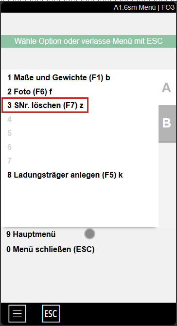 In the MDE screen A1.6s (serial number entry during warehouse receipt), the F7 function is now available to delete a previously entered serial number. The entry in the menu and function bar is Delete SNo..