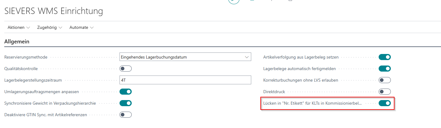 The new field Allow Gaps in "Label No." for PTUs in Picking Document is available in the SIEVERS WMS Setup. When this flag is activated, gaps in the numbering are allowed when assigning PTU label numbers. Instead of searching for the next gap-free available number, the last used number is simply incremented.
