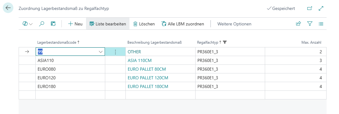 - Number of Storage Places: Number of storage places that have this rack bay code assigned.